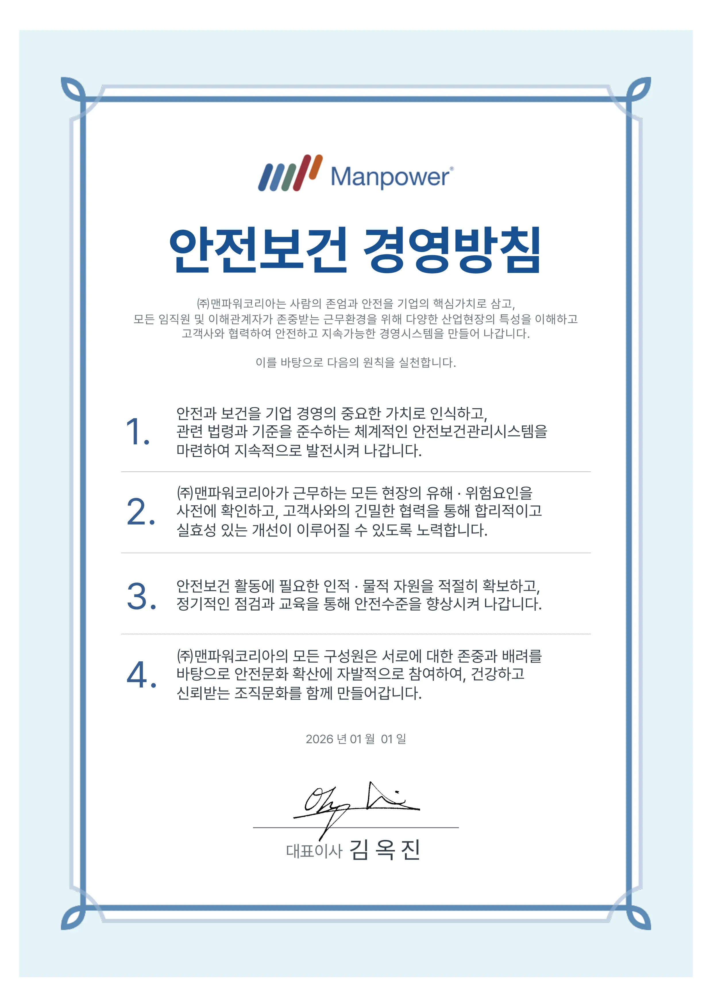 법과 기준에 적합한 안전하고 투명한 인력운영